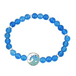 Sterling Silver Wave Blue Agate Stretchy Bracelet