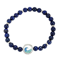 Sterling Silver Wave Lapis Stretchy Bracelet